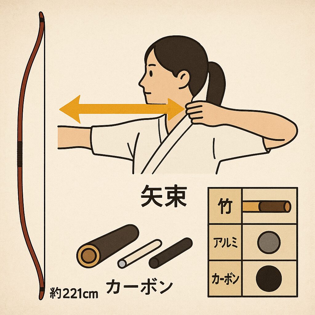 - 長さは身長ではなく矢束の実測を基準に判断する