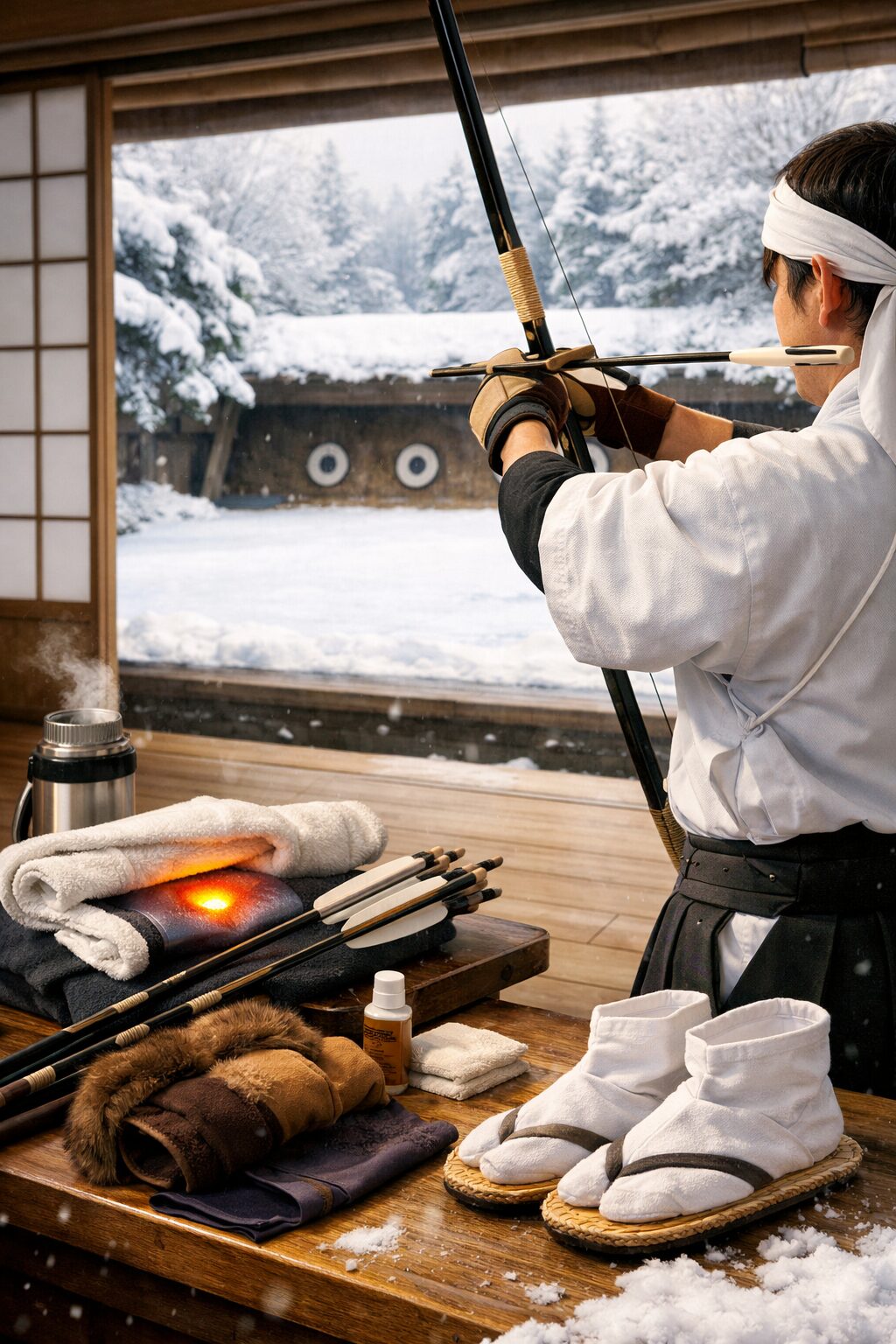 - 冬場の弓具管理と弦のケア、道場環境や風への対策