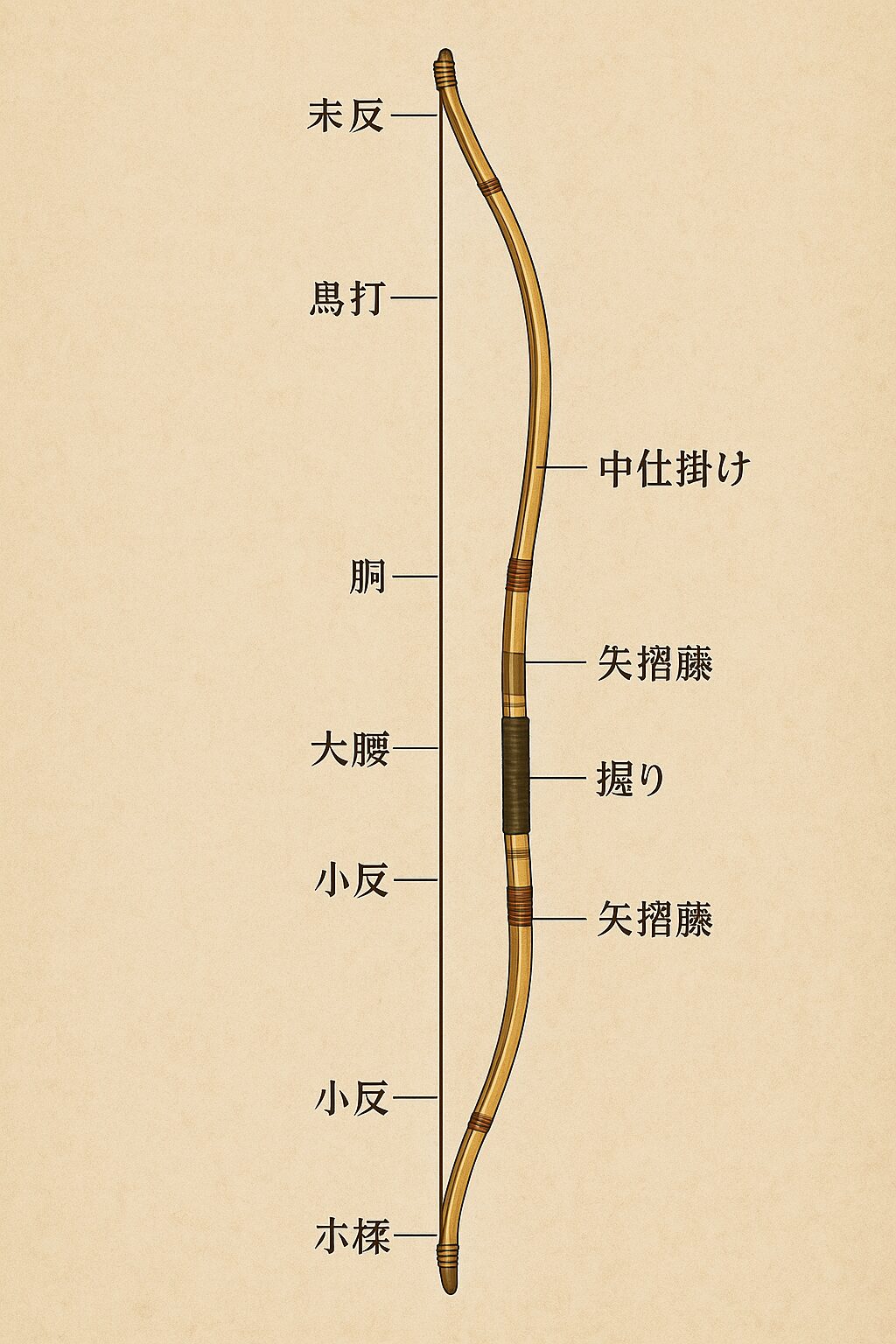 弓道の弓の部位の仕組みと名称一覧と弓の構造と役割を詳しく解説