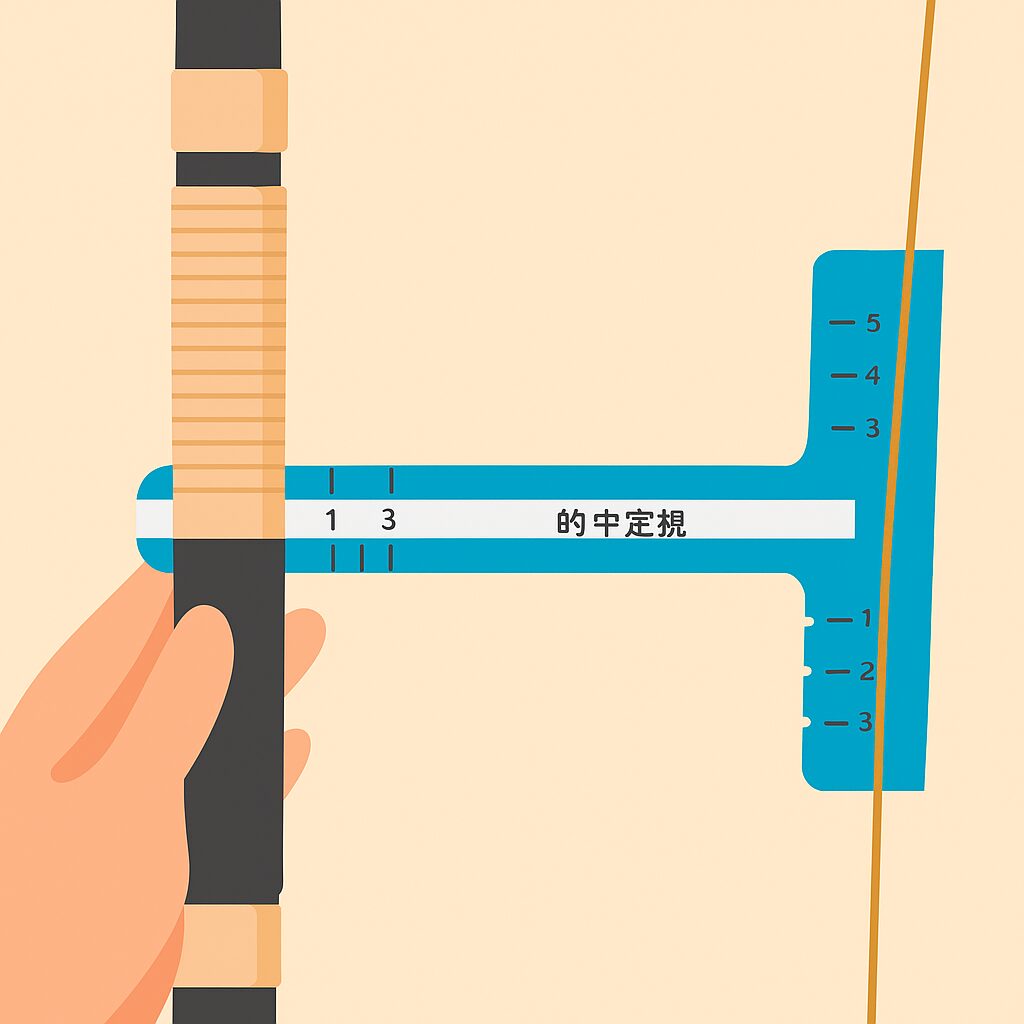 計測の基本は、握り皮上端から弦までの垂直距離を直尺で測ることです。手順はシンプルでも、再現性を高めるコツが複数あります。第一に、張り直し直後は弦の初期伸びや輪の締まりで数値が変化しやすいため、張り直し→数射→再計測の工程を標準化します。第二に、弓を安定した平面に置き、握り部を真上から見下ろす位置で計測して視差を減らします。第三に、上関板と弦の隙間を補助指標として併観し、弓把値と張顔の整合を確認します。拳(親指を伸ばした状態)が約15cmの目安として知られますが、数ミリの調整を要する検証段階では必ず物差しを使い、毎回同じ条件で記録します。